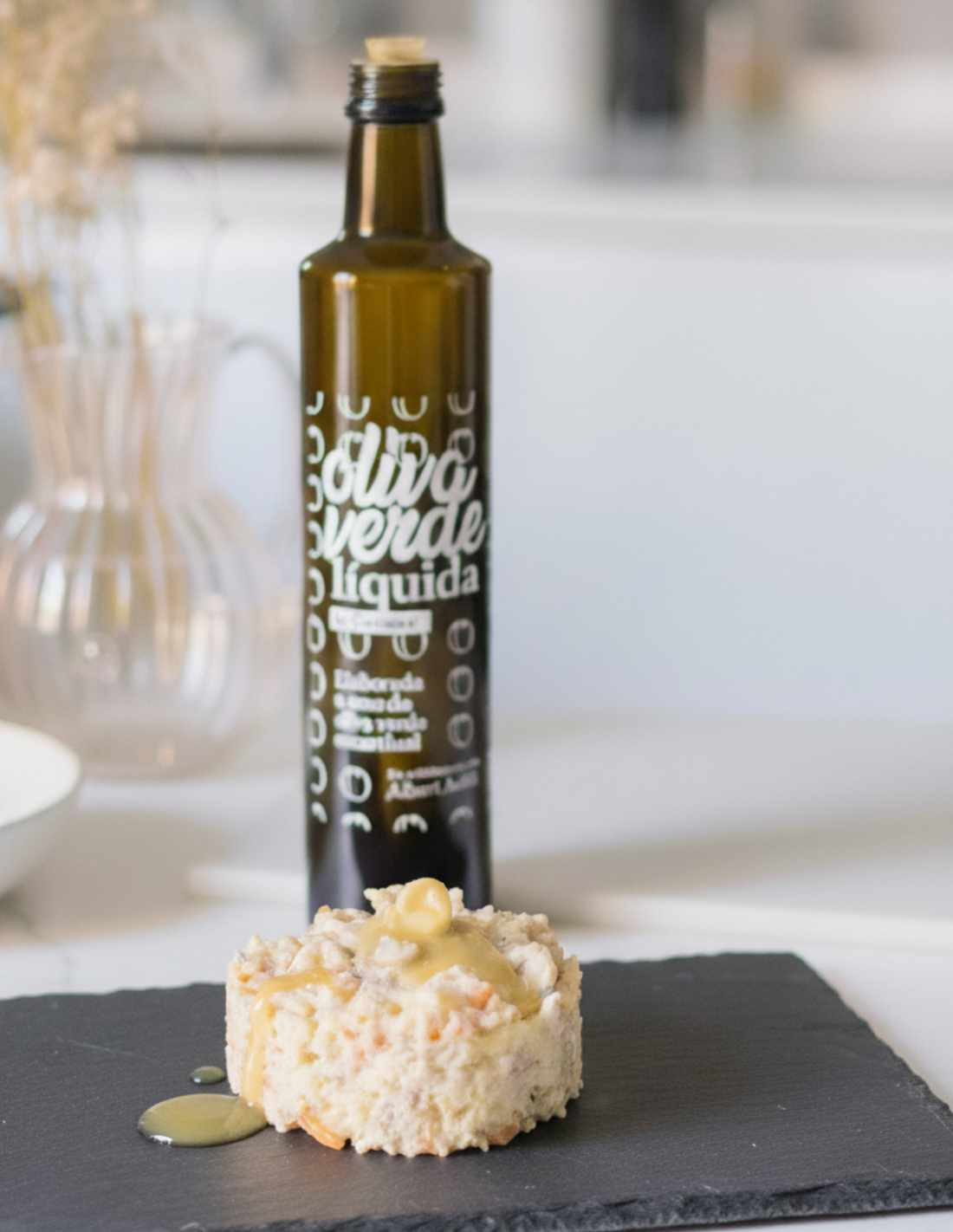 ¿QUÉ ES SALSA DE OLIVA VERDE LÍQUIDA? Un homenaje a la aceituna. Un ejercicio de síntesis de lo que representan a nivel gustativo un producto tan sencillo y a la vez complejo como es una oliva encurtido. Con estas salsas elaboradas a base de olivas verdes encurtidas queremos homenajear un producto cotidiano y para nosotros central en toda la cocina mediterránea.