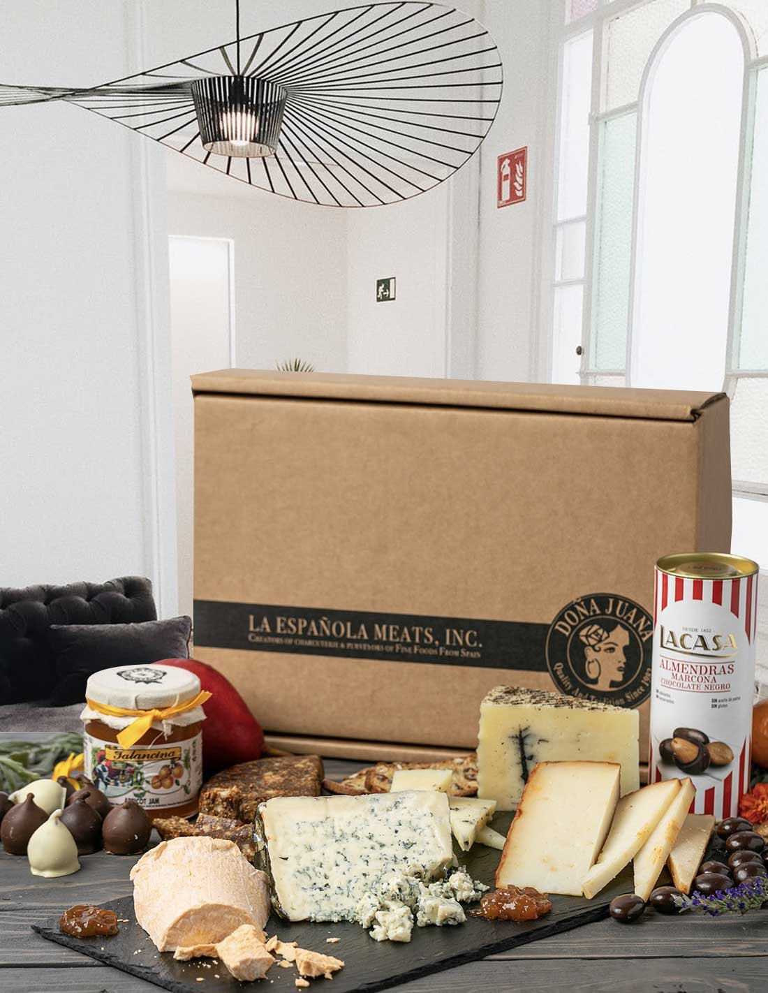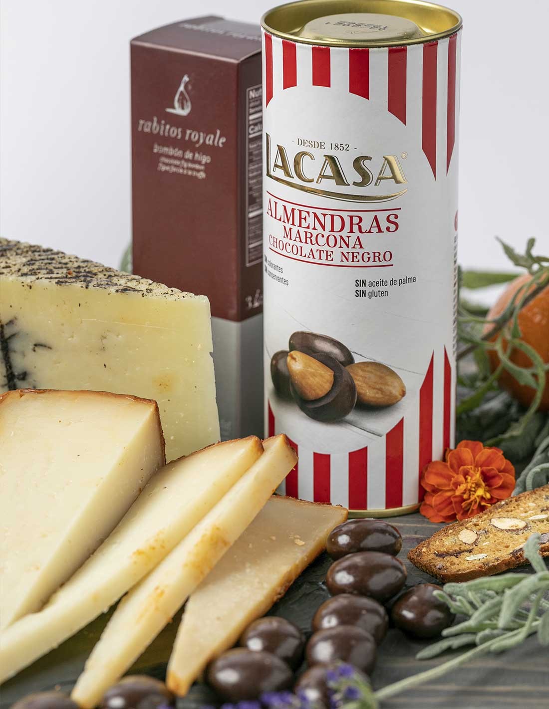 Una irresistible selección de sabores con Denominación de Origen, perfecta para cualquier ocasión especial: Paleta ibérica de bellota Lomo ibérico de bellota Queso curado formato baby Turrón artesanal DOP Presentación en caja regalo elegante Sabor auténtico, calidad superior y una presentación lista para impresionar desde el primer vistazo.