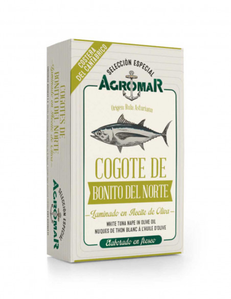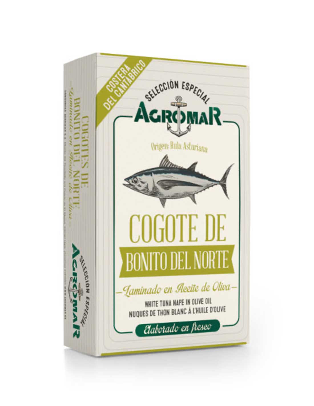 El cogote de bonito del norte forma parte de los productos emblema de la casa. Cortamos a mano las láminas y filetes más selectos de la parte superior del bonito, cercana a la cabeza y conocida como cogote, y lo ofrecemos como un producto de especial jugosidad, fileteado y empacado a mano. Con el objetivo de ofrecer un sabor inigualable, para su elaboración en fresco únicamente empleamos bonito del Mar Cantábrico en campaña de verano.