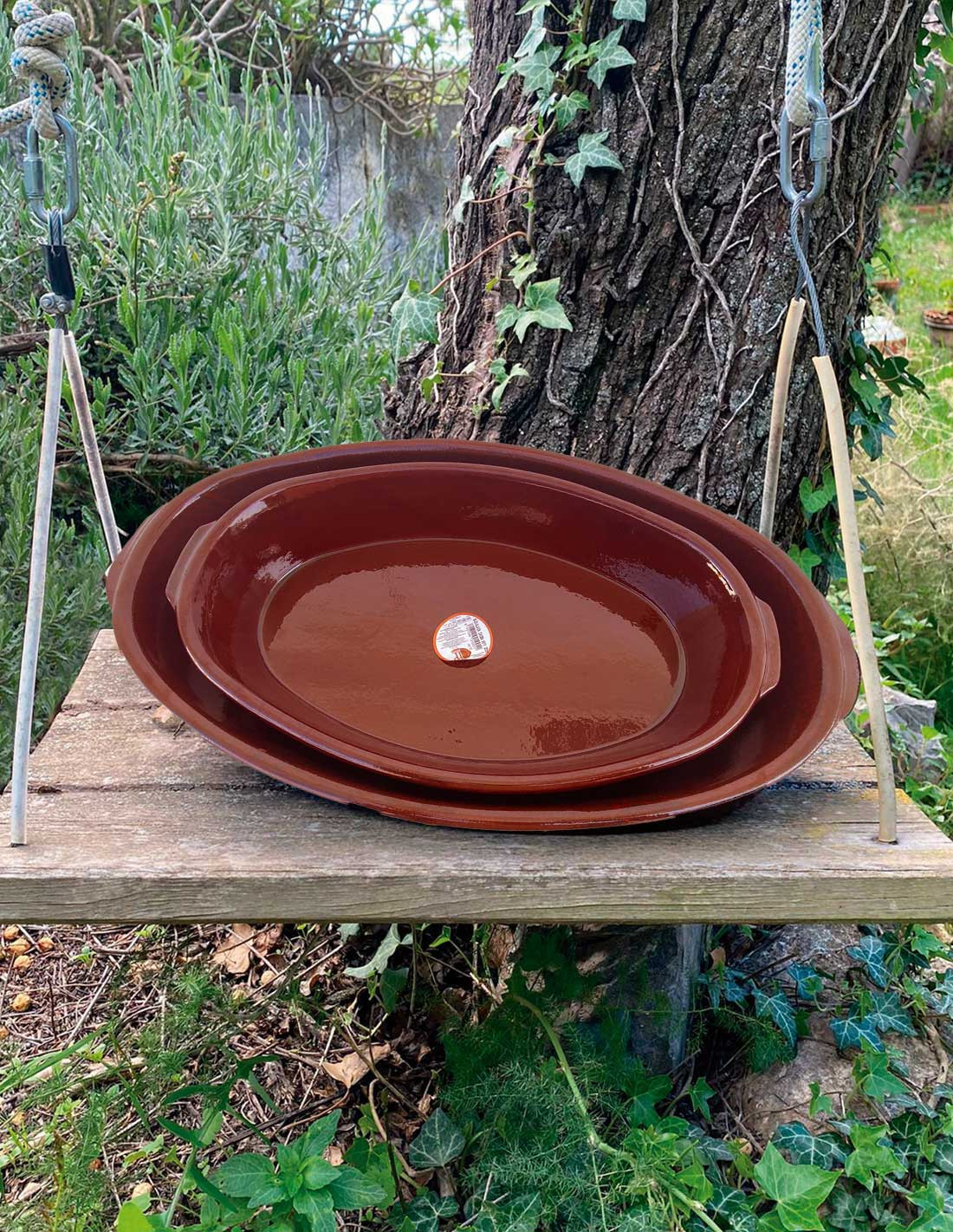 In a first use fill the piece with water and leave it heating on the fire for 5 minutes. For later use, wash as usual and heat it on the fire with food.