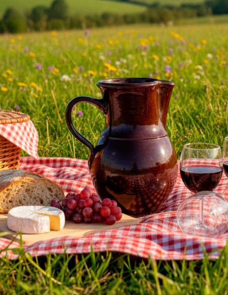 Handcrafted stoneware pitcher, ideal for decanting and serving wine. Its natural finish helps maintain the right temperature while adding a rustic yet elegant touch to your table.