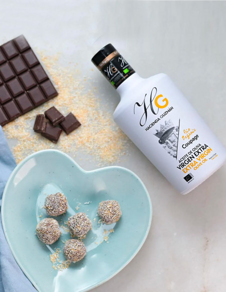 From the combination of the best flavours of Hacienda Guzmán, you get HG Coupage. An extra virgin olive oil with a distinctive fragrance and a genuine sensation on the palate: with the aroma and the freshness of hojiblanca, the fruitiness of arbequina and the exclusivity of manzanilla. It is an oil with body, green in colour and exuding extraordinary fragrance. HG Coupage is obtained from the certified organic production of 300 hectares of Hacienda Guzmán through the most sustainable and environmentally friendly method. It is an oil with body, green in colour and exuding extraordinary fragrance. Its odour resembles a very fruity green olive identifiable on the nose with herbaceous aromas. On the palate, it is balanced between the bitter and the spicy, and is light with a flavour of almond and fresh wood, making for a very specific personality.
